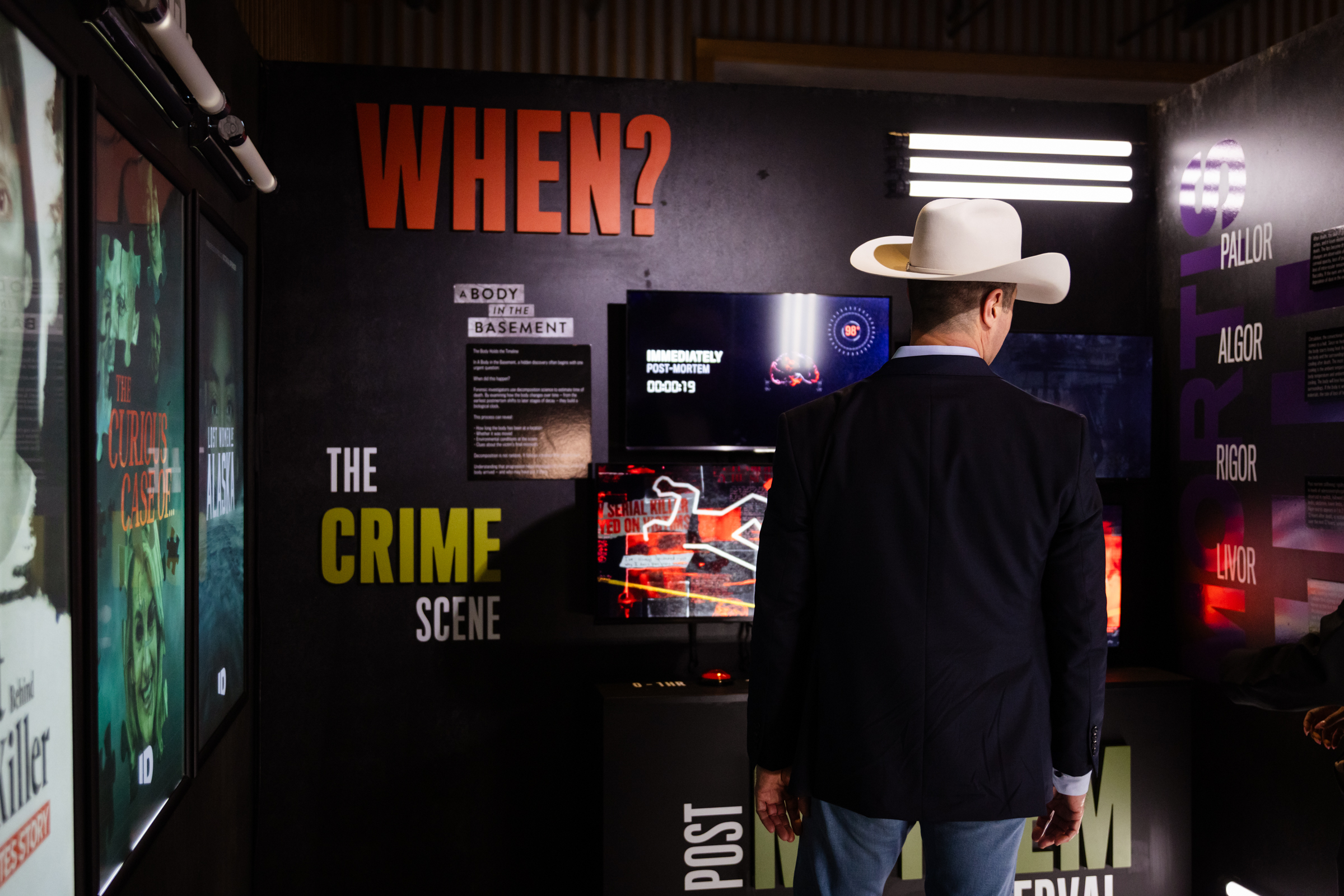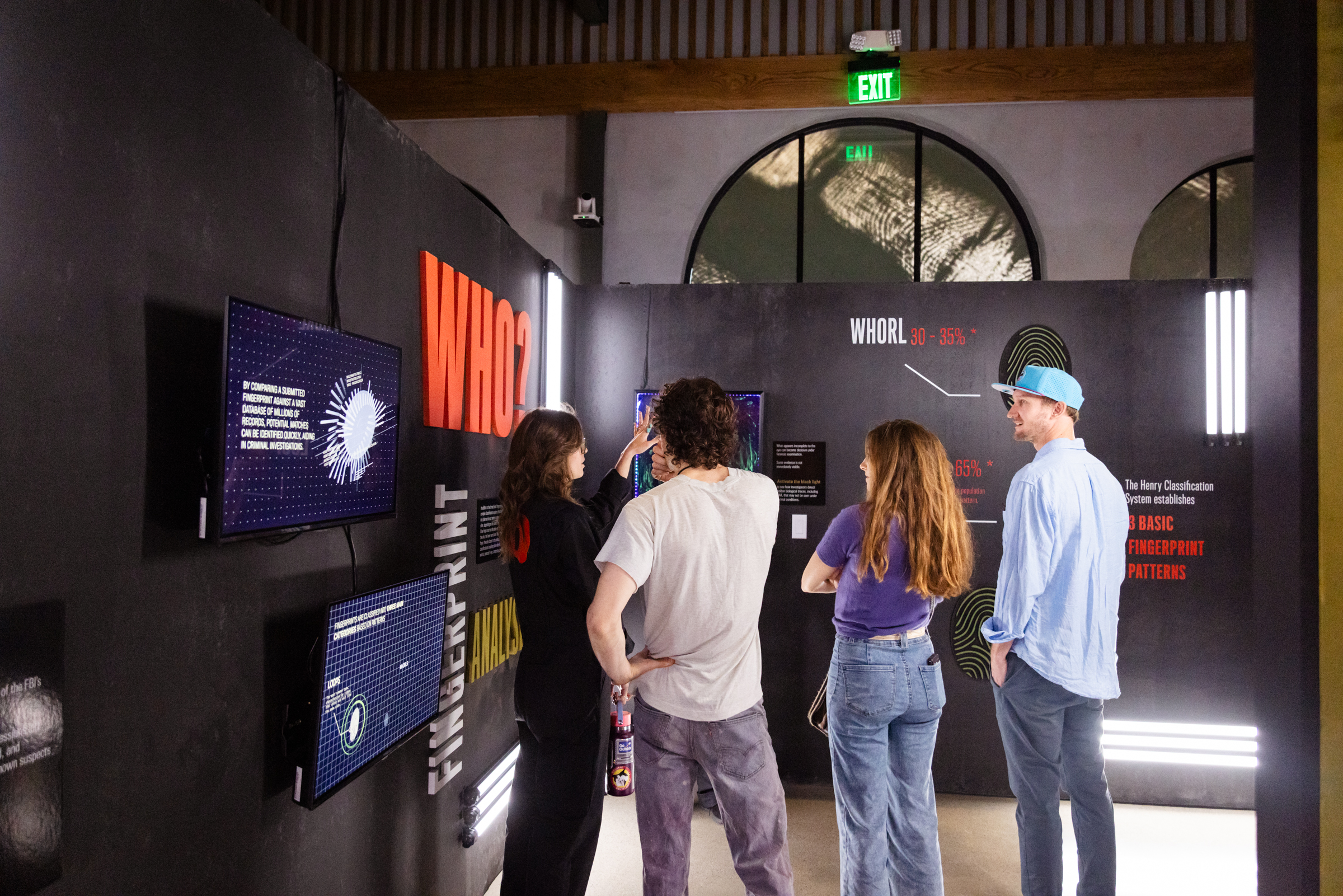 Designed to turn passive viewing into active participation, the experience brought the science and process of solving a case into a live environment. Guests moved through a series of forensic-inspired spaces and interactive moments, including CCTV-style entry footage, digital crime clock screens, a decomposition display, fingerprinting and ballistics labs, a suspect and timeline board, an interrogation room, and a red room photo opportunity designed for social capture.